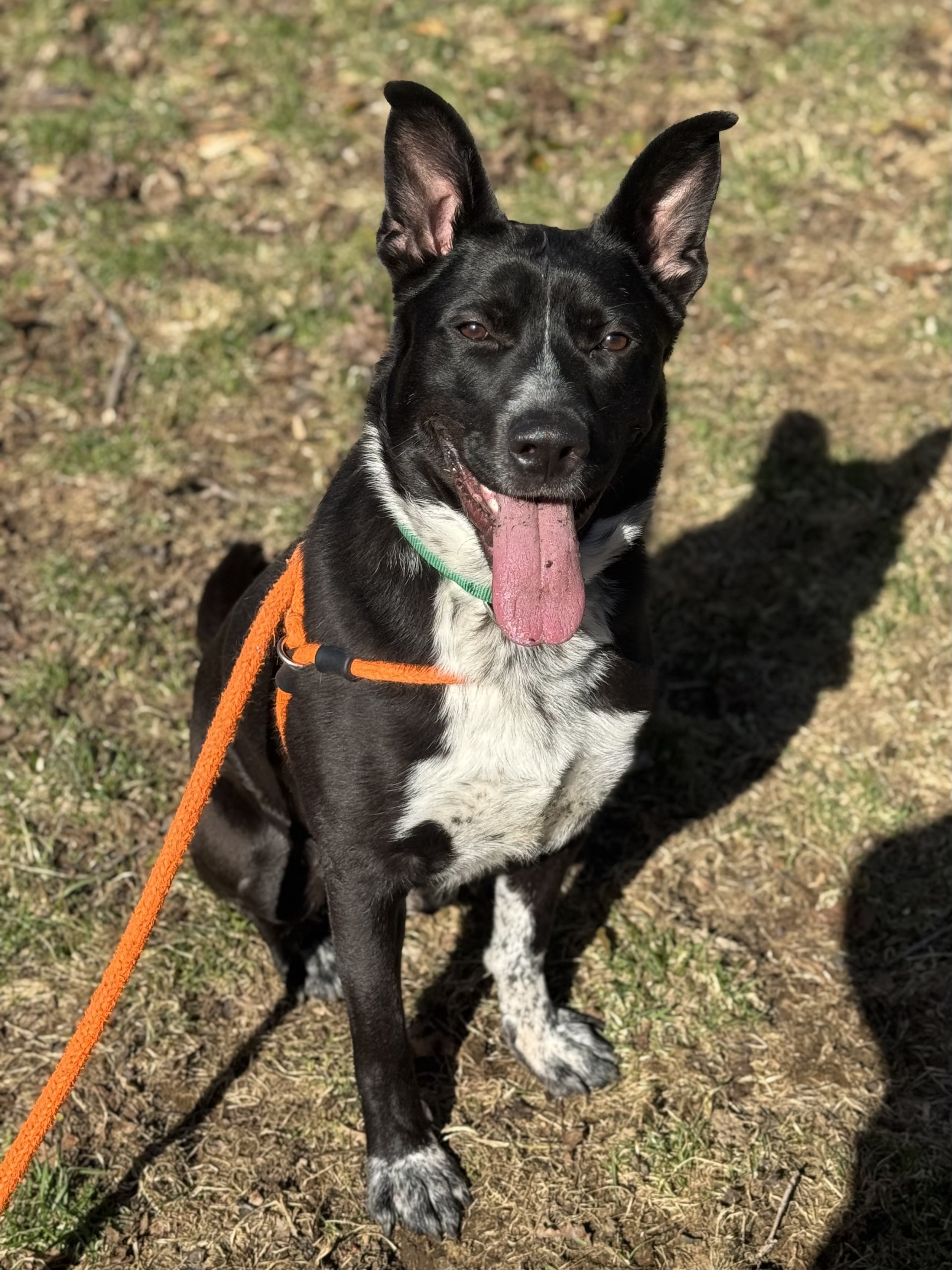 He is a good boy with enough energy to power an entire playgroup. His tail seems to have only two speeds, fast and faster. His past includes being hit by a car in October and suffering a severe pelvic fracture, which required months of strict cage rest. He handled it with patience and with the help of a very good vet, and time. Now that heβs fully recovered, play is absolutely his love language. He enjoys romping with other energetic dogs and matches their enthusiasm happily. More mature or low key dogs may find him a bit much, but for dogs who like to run, wrestle, and have fun, Calvin might be your guy.